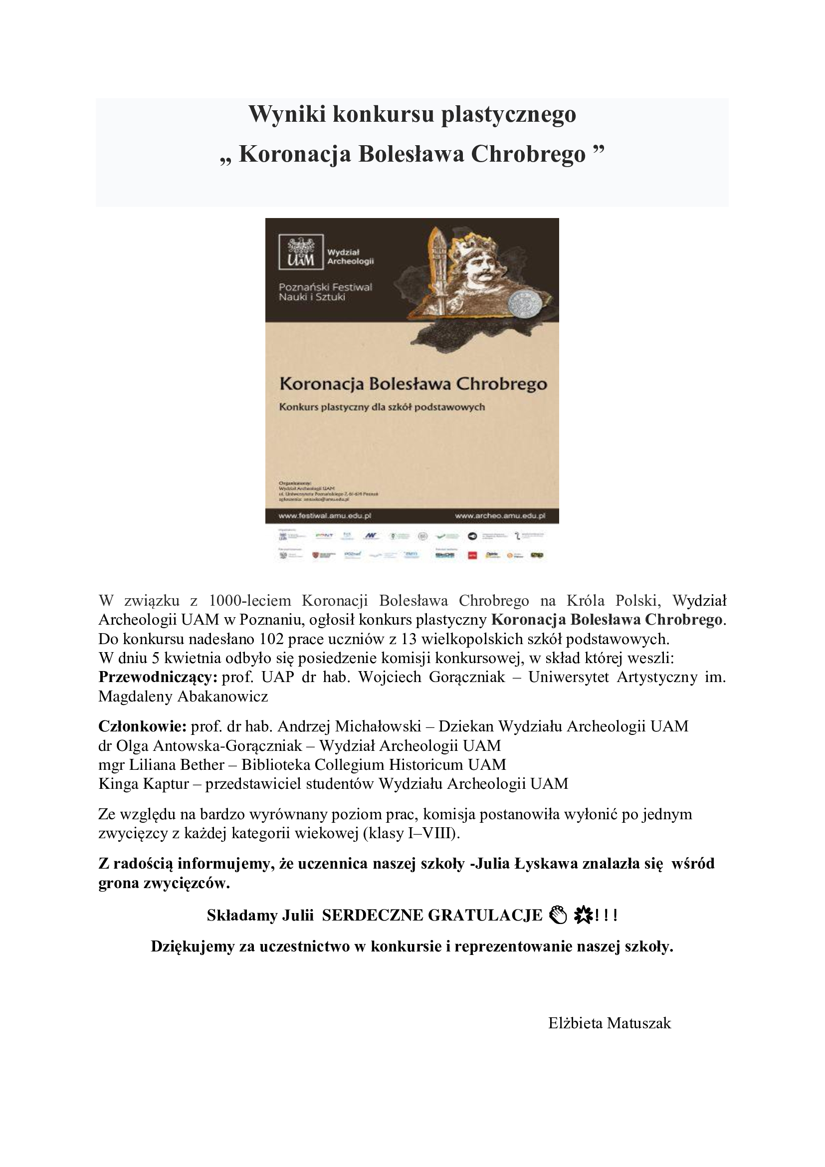 Wyniki konkursu plastycznego „ Koronacja Bolesława Chrobrego ”